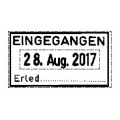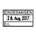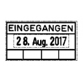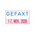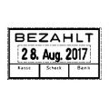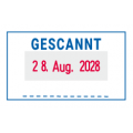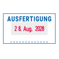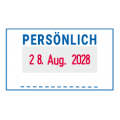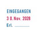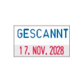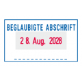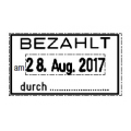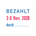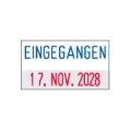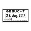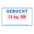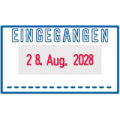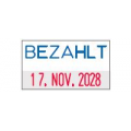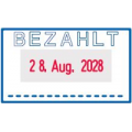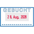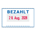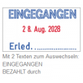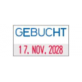 Die Stempelmodelle haben ein verstellbares Datum und feste Texte, wie Gebucht, Eingegangen, Bezahlt.